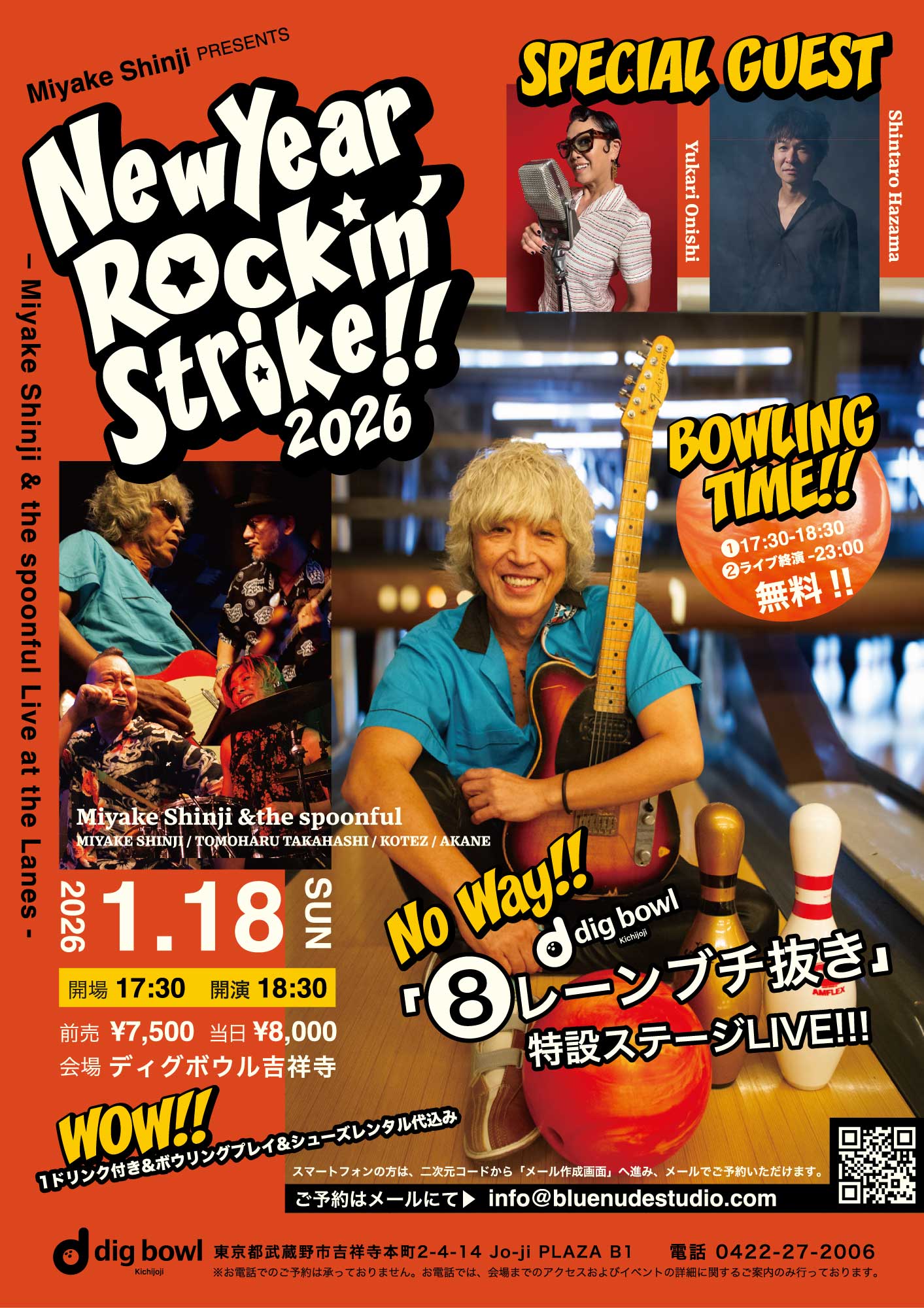 三宅伸治 & the spoonful を迎え、ボウリング場ならではの特設ステージでお届けする、年始スペシャルライブイベントです。